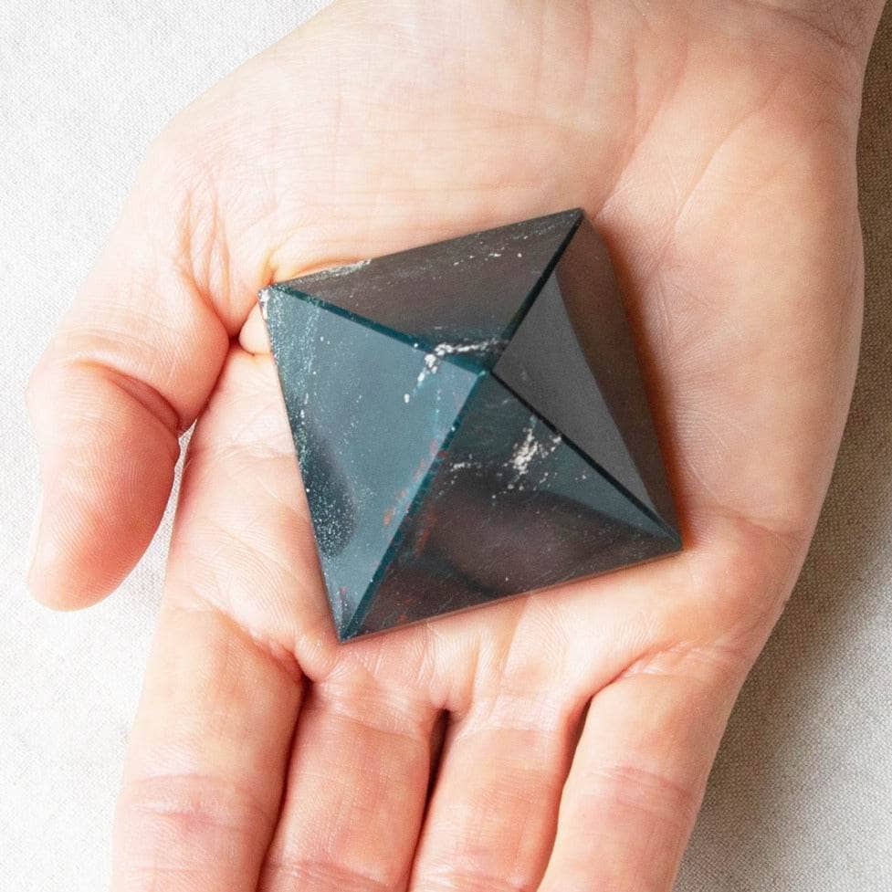The pyramid is a stunning shape for the energy of the Bloodstone. Pyramids are considered to be one of the most important shapes in sacred geometry. Able to collect energy and resources from the cosmos and the wider world thanks to its point. yet also well versed in its ability to stand steady and strong and solid with the earth thanks to its solid base. this pyramid is the picture of pure connection across all plains.