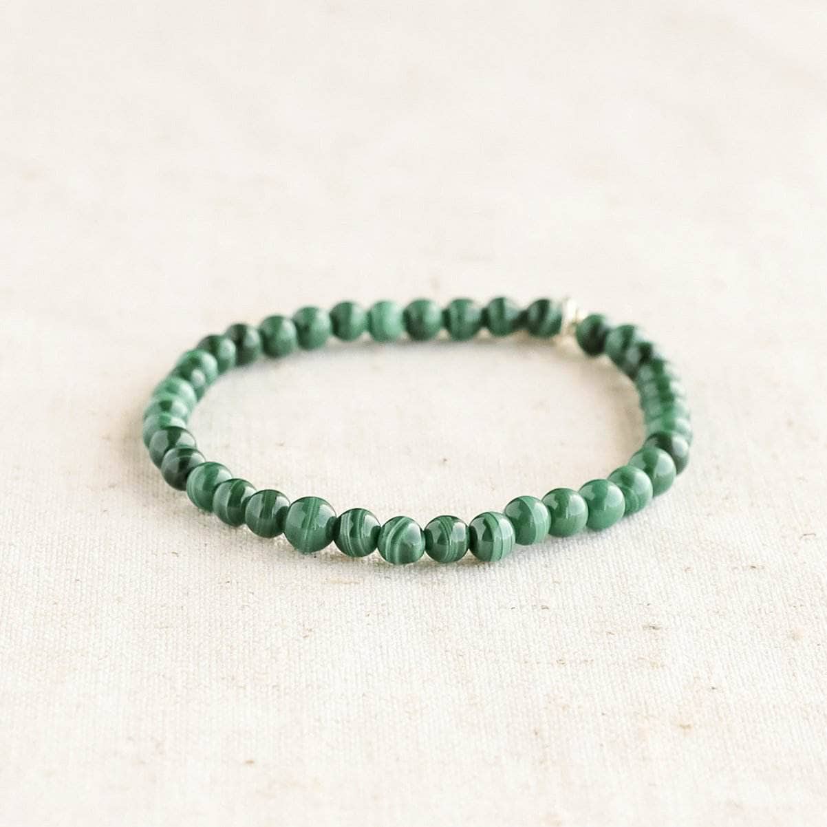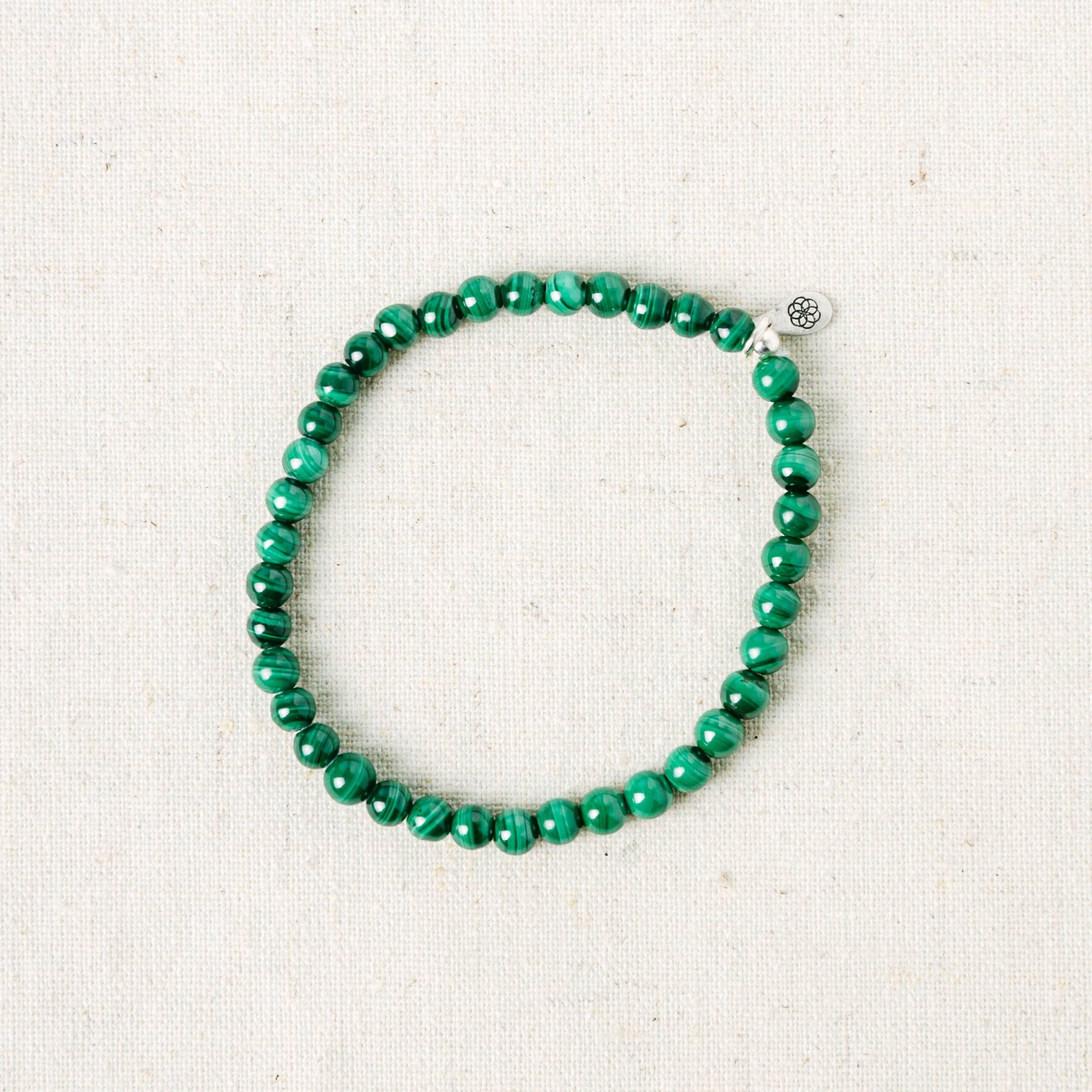 A vibrant pop of color etched with hypnotic swirls. Malachite is a rush of energy and all healing love. The Malachite Energy Bracelet will reach deep inside your heart and turn the tap. releasing a flow of inner wisdom. sacred space. and positive transformation.