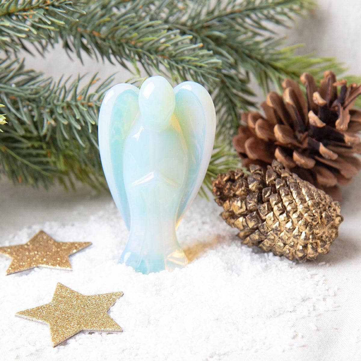 The Opalite Angel brings comfort around the clock and is especially useful during times of transition. It helps to sweep away feelings of anxiety and sadness and instead opens your heart to wonder and gladness. It brings the gentle energy of positivity along with actively encouraging elevated and clear-headed communication – both of which are valuable assets in seeking inner peace and happiness.
