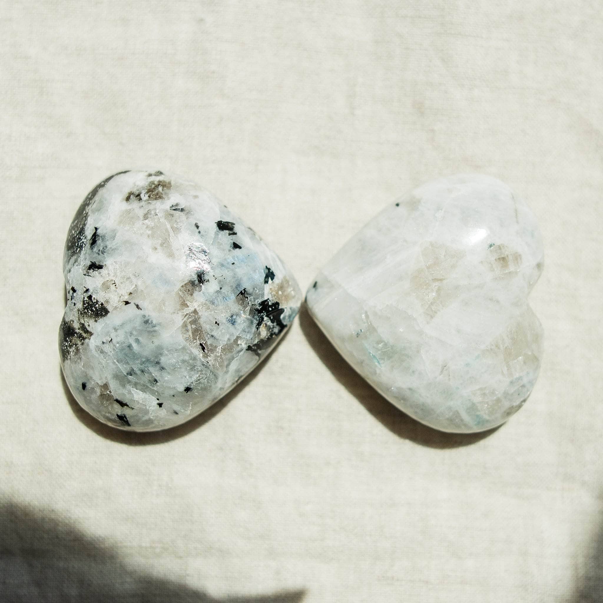 Healing light and shimmering self-compassion meet in the Rainbow Moonstone Heart. This crystal heart is full of feminine flow. soft curves. and a lunar-like quality that guides you through the darkest of nights. Here to bring a flush of positive power to your persona. this healing crystal is radiant with ancient moon magic.