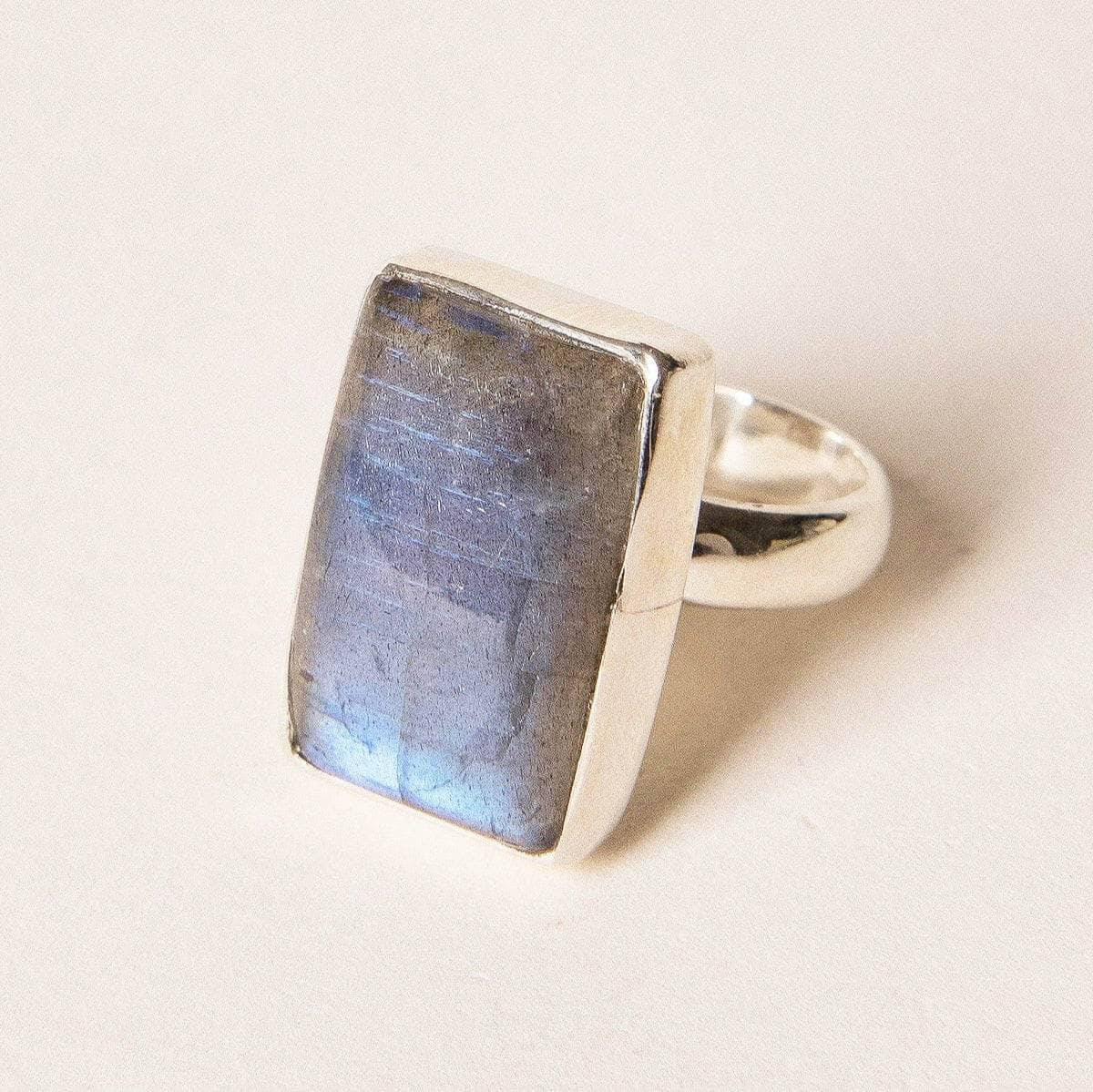 Square Labradorite Gemstone Ring – Adjustable